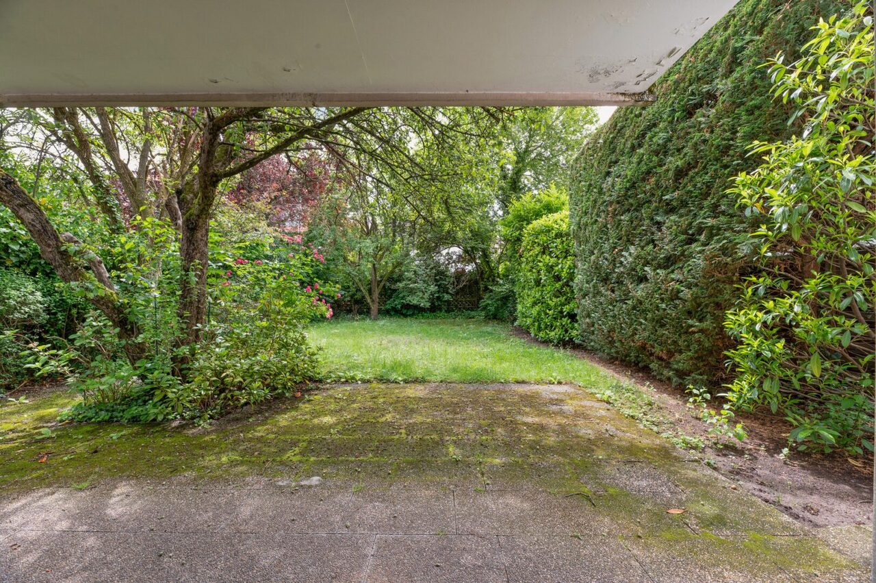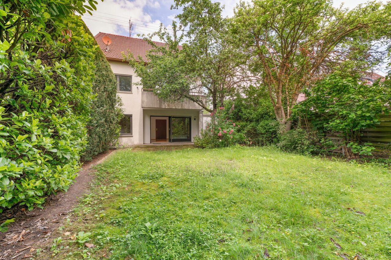 Ist von der Straßenseite aus nicht einsehbar. Hat ein gutes Größenverhältnis zu den Wohnflächen und liegt im Süden. Tendenziell etwas überwuchert und kann kräftig zurückgeschnitten werden.