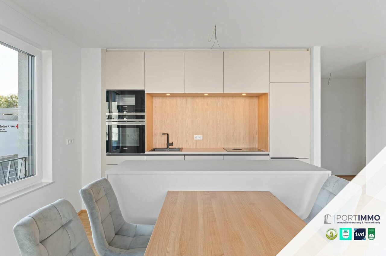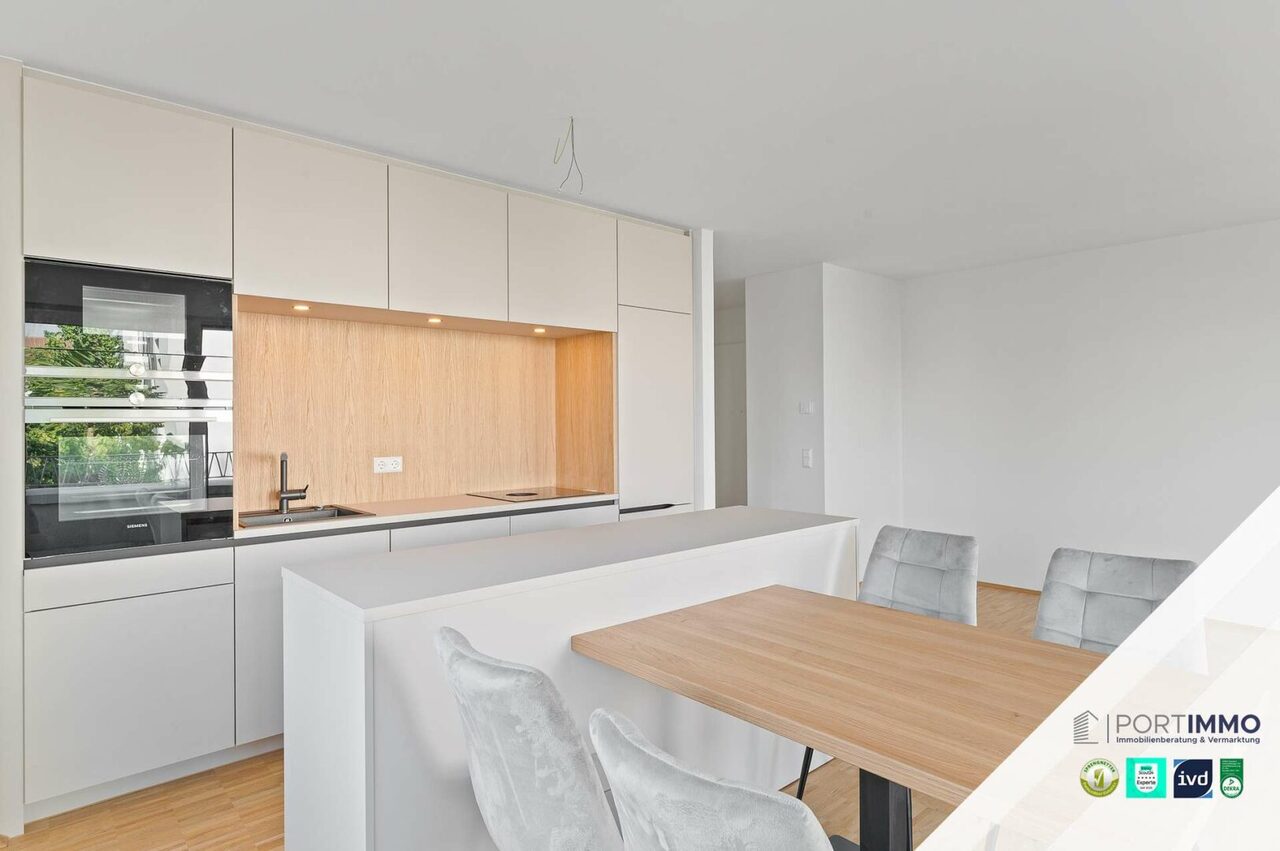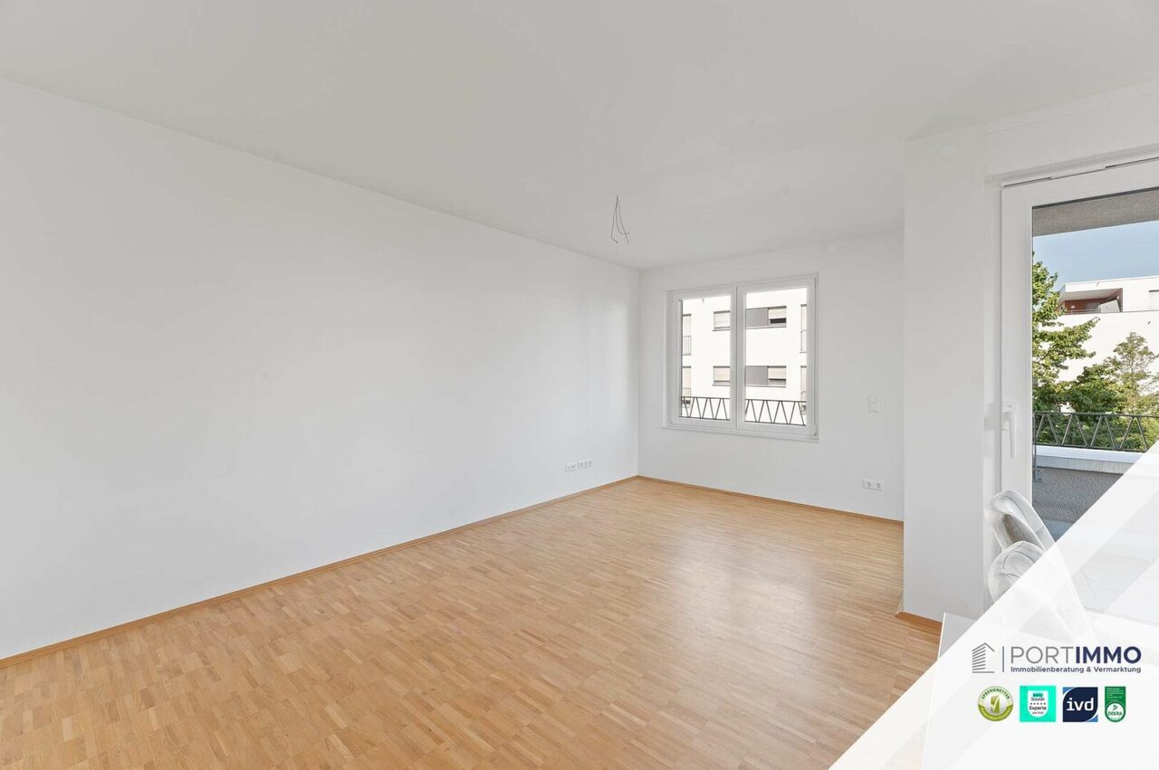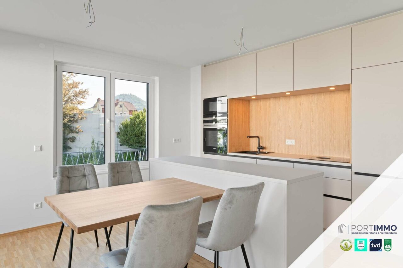 Verwandeln Sie doch diese wunderschöne 2-Zimmer-Neubauwohnung in Ihr ganz persönliches Traumzuhause. Das großzügige, lichtdurchflutete Wohnzimmer begeistert mit seinem offenen Koch- und Essbereich. Innerhalb des großen Wohnbereichs gelangen Sie auf die großzügige Loggia, die zum Verweilen im Freien einlädt. Die luxuriöse Einbauküche fügt sich perfekt in die Wohnung ein und überzeugt mit atemberaubenden Features. Vom Wohnbereich abgegrenzt finden Sie das großzügige Schlafzimmer, in welchem Sie Ruhe und Energie tanken können. Das Badezimmer besitzt eine bodentiefe Dusche und ein großes Fenster für ein helles Tageslichtbad. Das Angebot wird durch ein eigenes Kellerabteil und einen eigenen Tiefgaragenstellplatz abgerundet. Sobald Sie in der Tiefgarage geparkt haben, können Sie direkt mit dem Aufzug vor Ihrem neuen Zuhause ankommen.