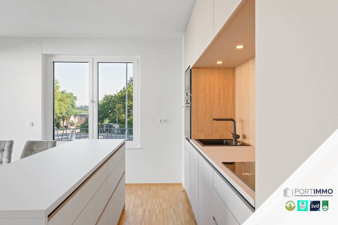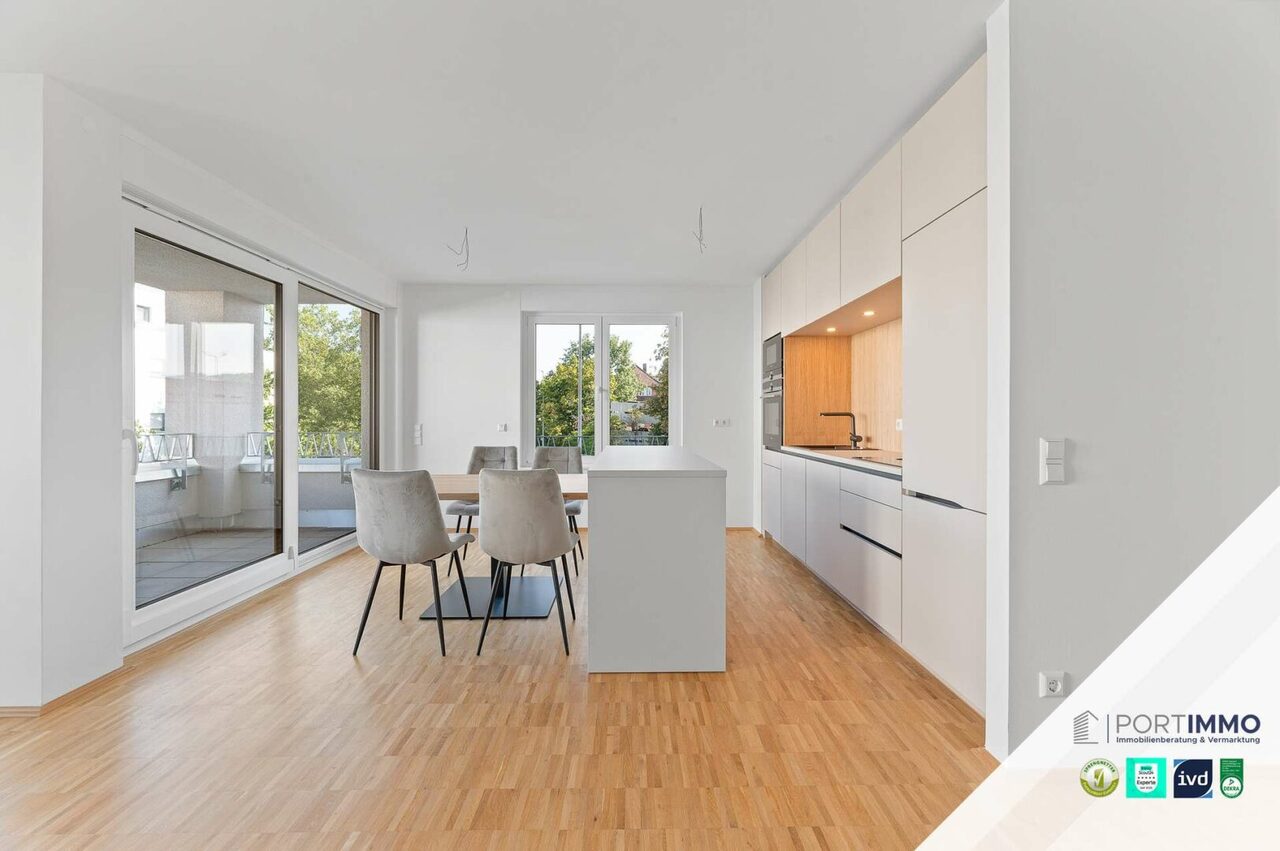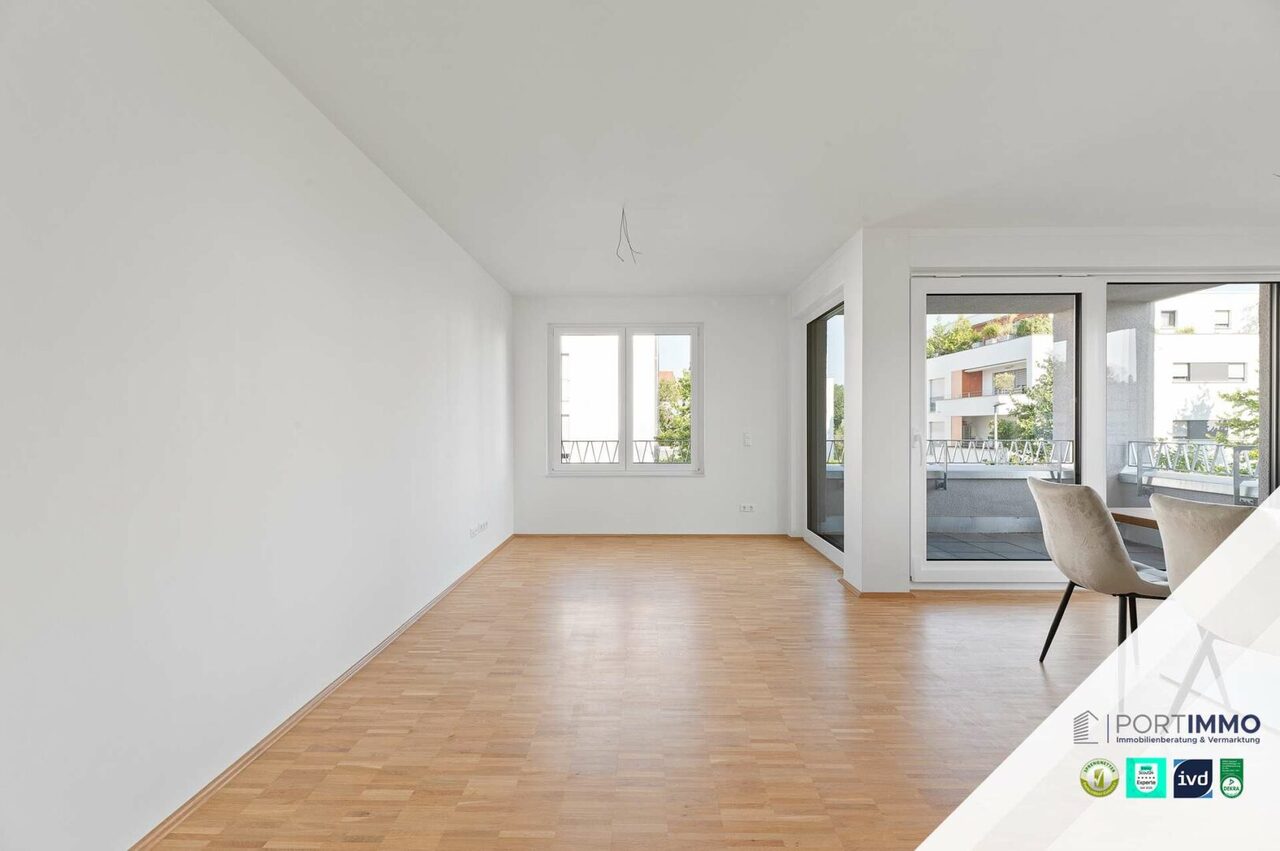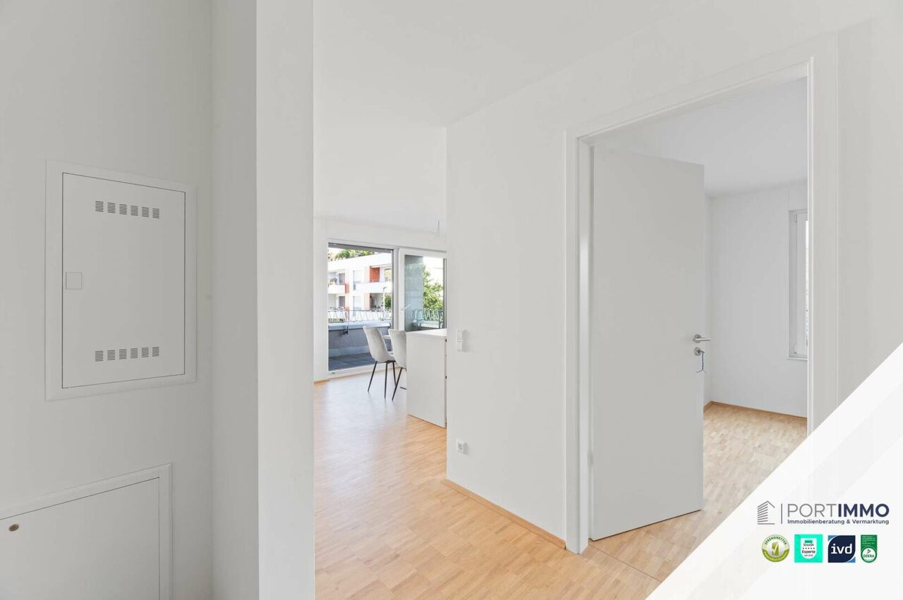 Verwandeln Sie doch diese wunderschöne 2-Zimmer-Neubauwohnung in Ihr ganz persönliches Traumzuhause. Das großzügige, lichtdurchflutete Wohnzimmer begeistert mit seinem offenen Koch- und Essbereich. Innerhalb des großen Wohnbereichs gelangen Sie auf die großzügige Loggia, die zum Verweilen im Freien einlädt. Die luxuriöse Einbauküche fügt sich perfekt in die Wohnung ein und überzeugt mit atemberaubenden Features. Vom Wohnbereich abgegrenzt finden Sie das großzügige Schlafzimmer, in welchem Sie Ruhe und Energie tanken können. Das Badezimmer besitzt eine bodentiefe Dusche und ein großes Fenster für ein helles Tageslichtbad. Das Angebot wird durch ein eigenes Kellerabteil und einen eigenen Tiefgaragenstellplatz abgerundet. Sobald Sie in der Tiefgarage geparkt haben, können Sie direkt mit dem Aufzug vor Ihrem neuen Zuhause ankommen.