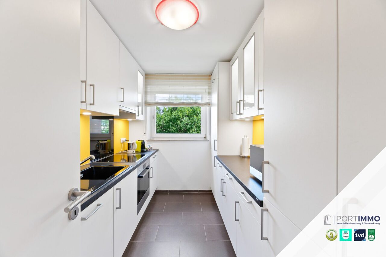 Diese moderne 3,5 Zimmer Wohnung befindet sich in der zweiten Etage eines gepflegten Mehrfamilienhauses aus dem Jahr 1982. Auf großzügigen ca. 86m² erstreckt sich Ihr neuer Wohntraum, der keine Wünsche offen lässt. Die Wohnung verfügt über zwei geräumige Schlafzimmer und ein lichtdurchflutetes Wohnzimmer. Das Badezimmer ist durch ein Fenster natürlich beleuchtet und belüftet und bietet Anschlüsse für Waschmaschine und Trockner. Die Badewanne und Dusche fügen sich perfekt in den Baderaum mit ein. Hinzu kommt ein separates Gäste-WC mit einem Luftabzug. Die moderne Einbauküche ist ausgestattet mit hochwertigen Markengeräten wie Geschirrspüler, Herd mit Ceranfeld, Backofen, Kühlschrank und Gefrierschrank, Dunstabzugshaube und Mikrowelle; die innenbeleuchteten Schränke bieten viel Stauraum. Ein Aufzug bringt Sie bequem von Ihrem Tiefgaragenstellplatz direkt in Ihre Wohnetage. Die Wohnung ist sonnenverwöhnt und bietet dank großer Fenster viel Tageslicht. Ein eigenes Kellerabteil rundet das Angebot ab.