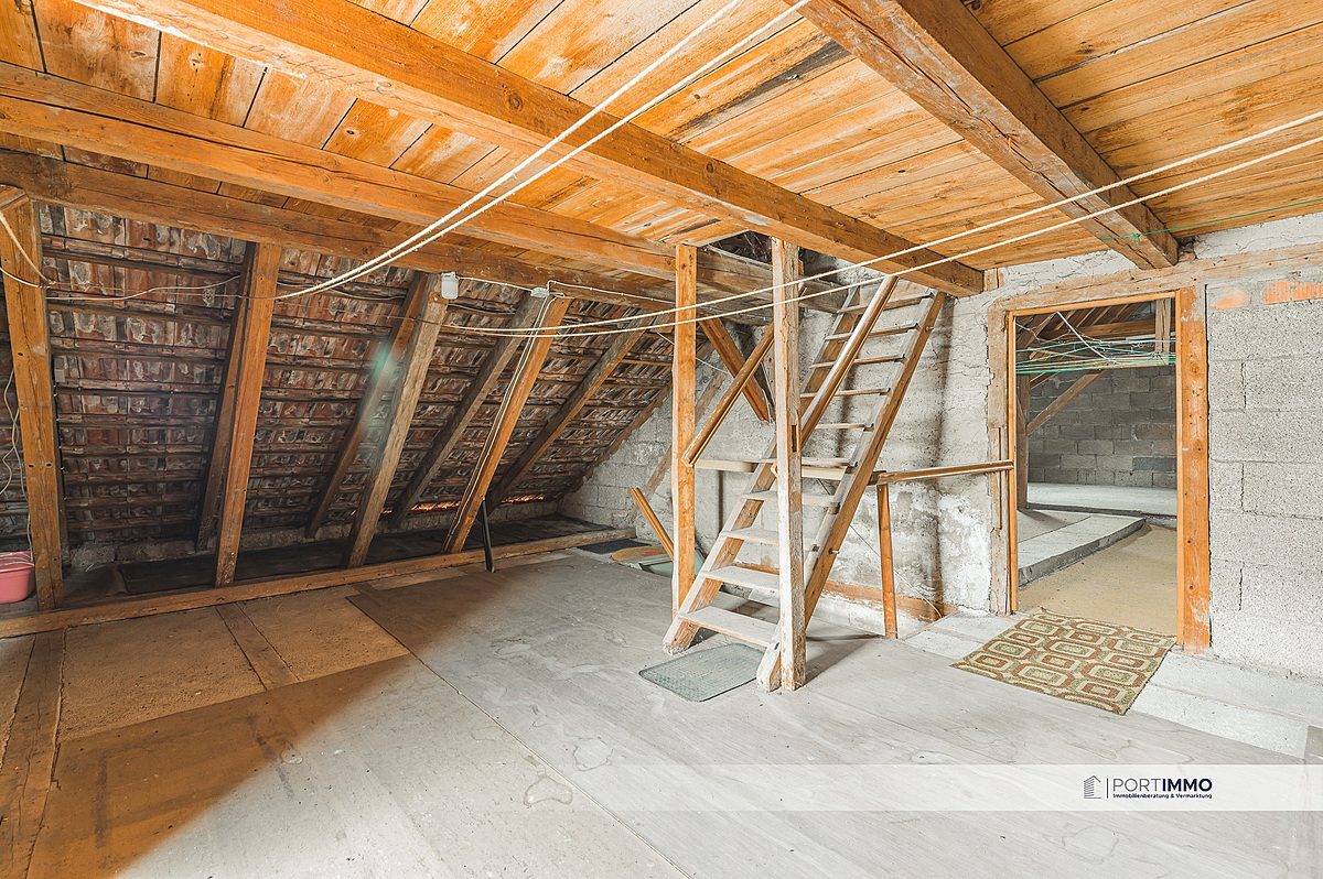 Das Dachgeschoss bietet Ihnen zusätzliche Nutzfläche. Hier haben Sie nochmal eine große Grundfläche mit Dachschrägen.