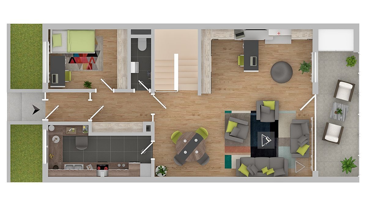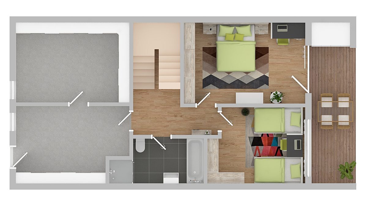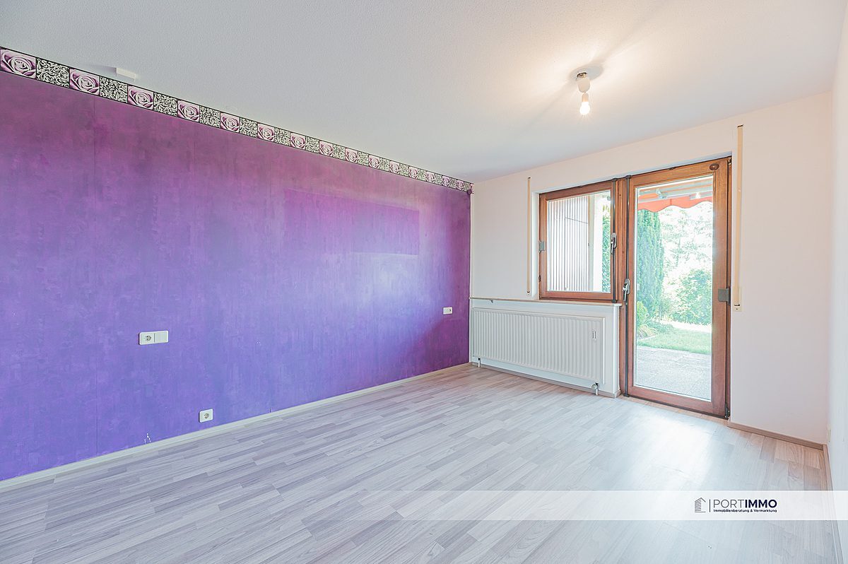 Durch den Flur gelangen Sie in ein weiteres Highlight der attraktiven 3,5-Zimmer-Wohnung. Das Schlafzimmer und das Kinderzimmer. Zusätzlich bietet Ihnen das Schlafzimmer mit seiner großzügigen Fensterfront zur Terrasse eine helle Atmosphäre. Freuen Sie sich auf gemütliche Sommertage auf der Terrasse mit schönen Garten.