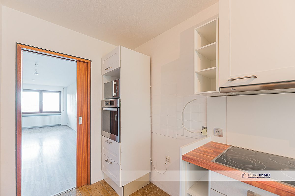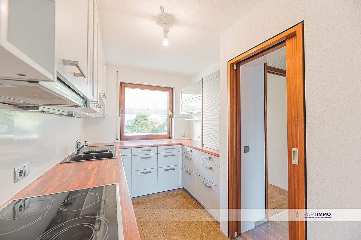 In der 4,5-Zimmer-Wohnung angekommen, finden Sie auf der linken Seite direkt das erste Zimmer, welches als Kinderzimmer genutzt werden kann. Neben dem Kinderzimmer befindet sich im Eingangsbereich ebenso das Gäste-WC und gegenüberliegend die schöne Einbauküche. Das helle Mobiliar lädt zum gemeinsamen Kochen ein. Freuen Sie sich auf die bereits eingebaute Spülmaschine, auf einen Herd mit Backofen und eine Mikrowelle.