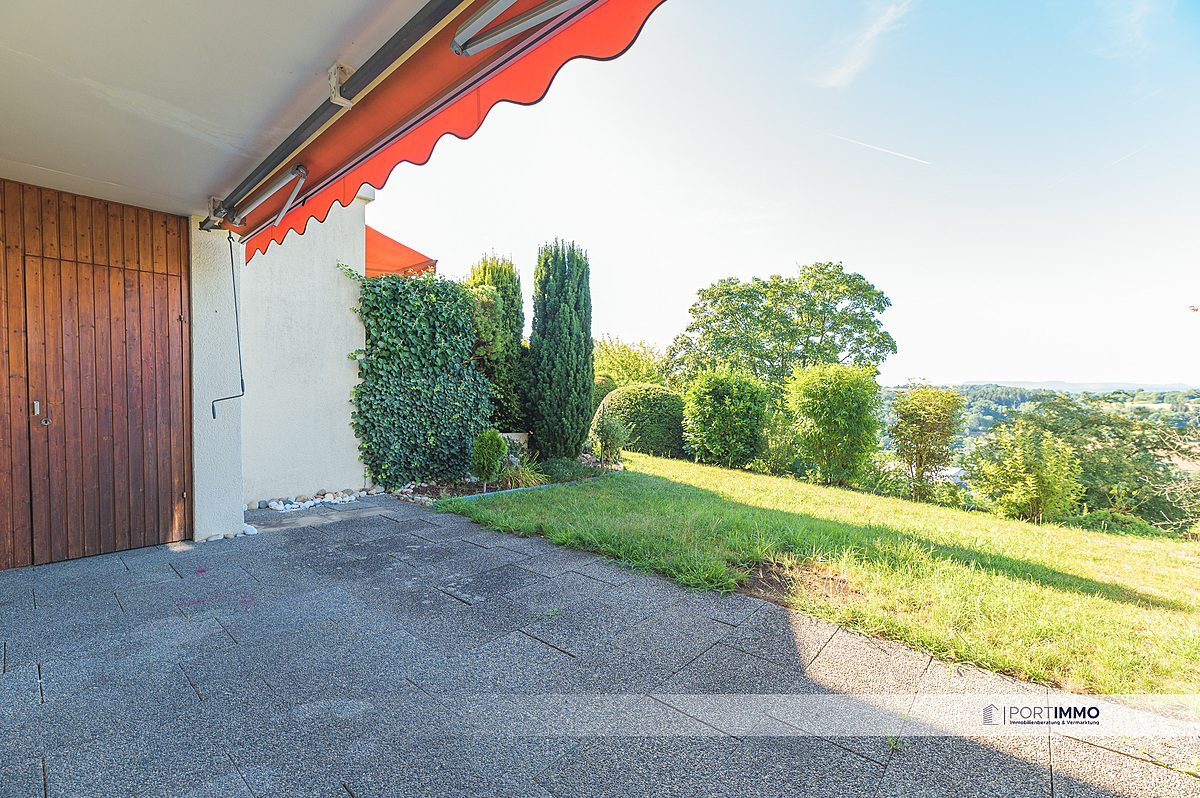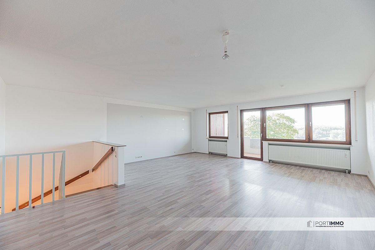 Durch die Küche oder durch den Eingangsbereich, gelangen Sie in den riesigen Wohn- und Essbereich mit einem großen Balkon und einem tollen Ausblick. Genießen Sie den morgendlichen Kaffee bei einer atemberaubenden Aussicht über die grünen Felder.